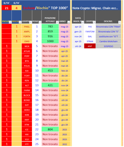 ⚠️ Crypto a Rischio & Escluse